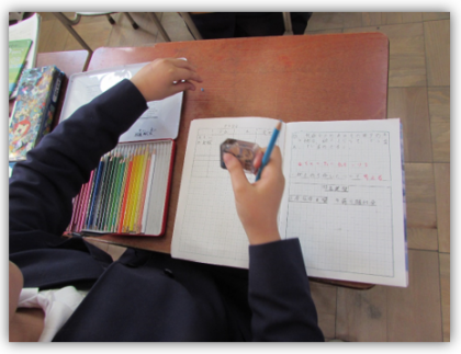 4年生の理科の学習です。資料写真を見て、この頃の植物や動物の様子について話し合いました。