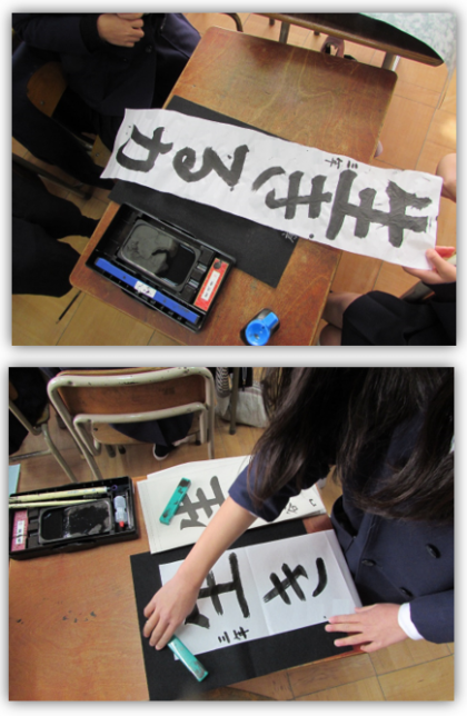 3年生国語の学習です。毛筆で『生きる力』と書きました。