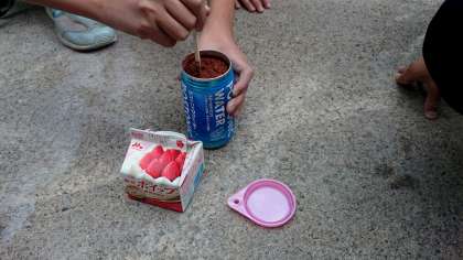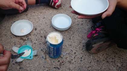 アイスクリーム作りをしました。入れ物いっぱいに甘くておいしいアイスクリームができました。