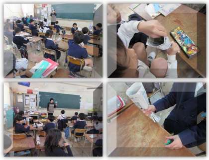 1月22日(火) 2年生の生活科の学習です。新聞紙を丸めて、けん玉を作りました。