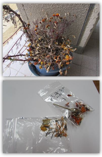 マリーゴールドの種を収穫したよ(1年生)