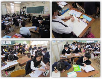 3年生の国語の学習です。漢字ドリルを使って、漢字の書き取り練習に取り組んでいます。