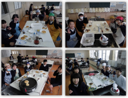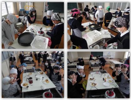 5年生の家庭科の学習です。今日は調理実習で、おやつ作りに取り組みました。今回作ったのは、パンケーキです。おいしくできて、子どもたちも大満足です。