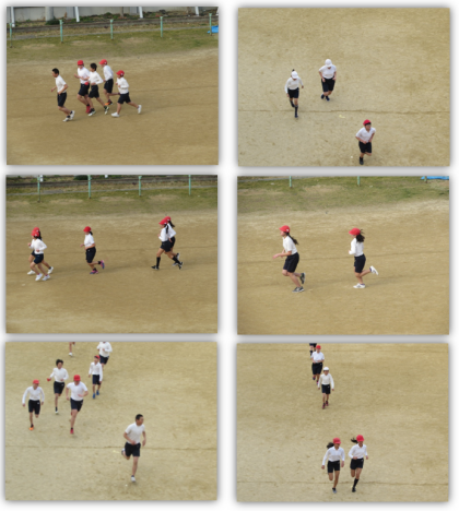 2月12日(火) 6年生の体育の学習です。初めに、ウォーミングアップとして、3分間走に取り組みます。