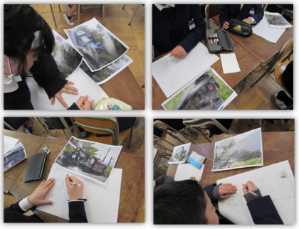 2月18日(月) 5年生の図画工作の学習です。「銀河鉄道の夜」の一場面を描きます。