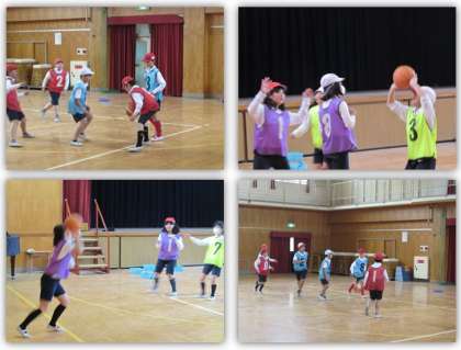 2月20日(水) 5年生の体育の学習です。体育館で、バスケットボールのゲームを行いました。