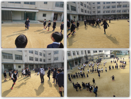 なわとぴ週間の5日目です。今日はあたたかな日差しの中で、楽しく大繩とびを行いました。