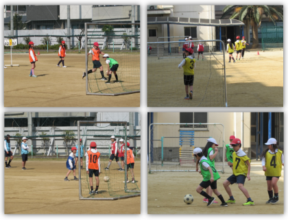 2月22日(金) 5年生の体育の学習です。今日は、サッカーのゲームを行いました。