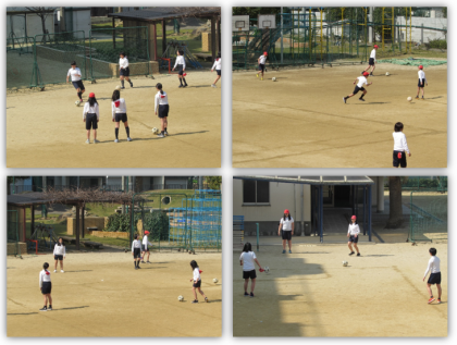 2月22日(金) 6年生の体育の学習です。サッカーの練習に取り組んでいます。