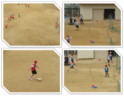 4年生の体育の学習です。サッカーのゲームに取り組みました。