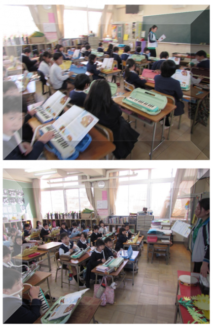 2年生の音楽の学習です。鍵盤ハーモニカで「こぐまの二月」の演奏をしています。