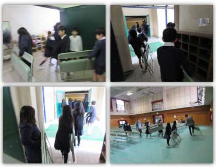 3月20日(水)は、卒業式です。今週から、卒業式に向けての練習が始まります。今日は5年生が、会場の椅子並べ等の準備を行いました。
