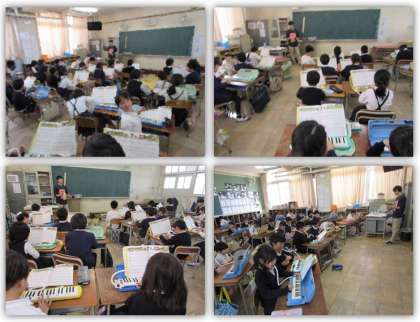 3月5日(火) 2年生の音楽の学習です。鍵盤ハーモニカで『アイアイ』を演奏しています。