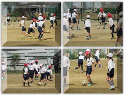 2年生の体育の学習です。ボールを蹴る運動に取り組んでいます。