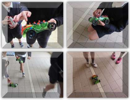 5年生の理科の学習です。電磁石の働きを利用して、モーターカーを作りました。