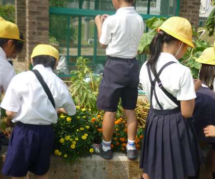 学習園に植えた植物のようすを観察しに行きました。