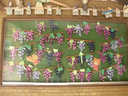 9月になりました。 2年生のみんなで作ったぶどうを玄関に掲示しています。
