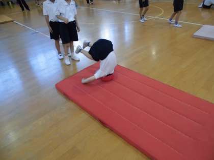前転も体を丸くしてスムーズにまわることができています。
