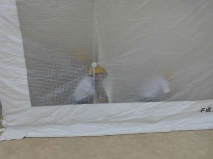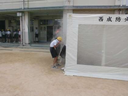 また、火事を想定した、煙テントの体験では、低くしゃがんでテントから出ることができました。