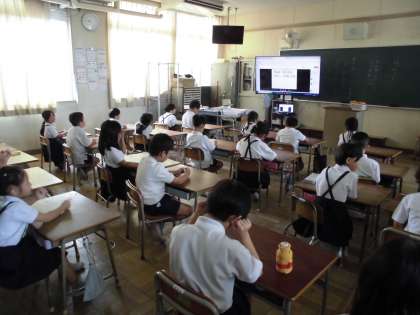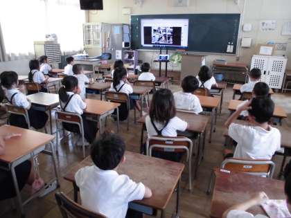 最初に教室で防災に関するDVDを見ながら、災害時の備えや自分を守る行動について学びました。