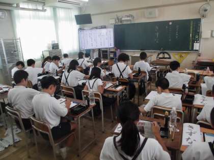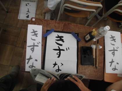 今日の書写の学習は、習字を行いました。「きずな」の文字に精一杯向き合っている様子でした。