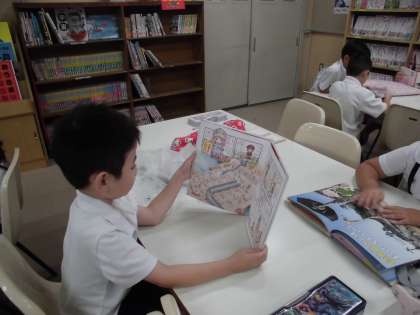図書の時間。みんな楽しそうに自分の好きな本を読んでいます。