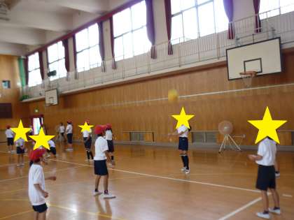 ソフトバレーボールをしました。 グループで何回ラリーが続くのかを数えながら練習をしました。