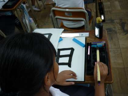 「おれ」に気をつけて習字をしました。