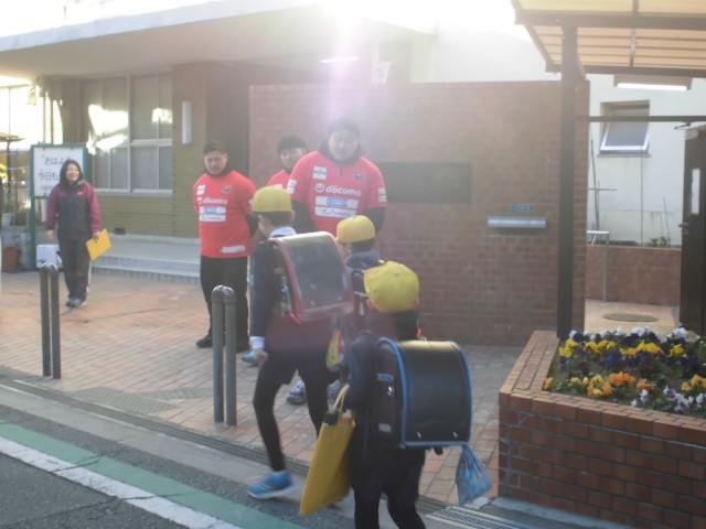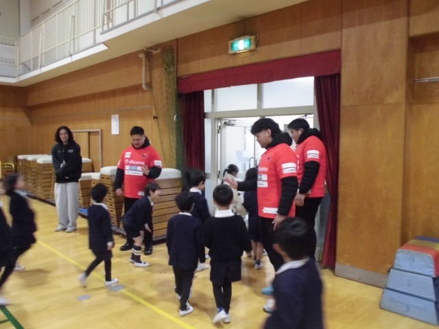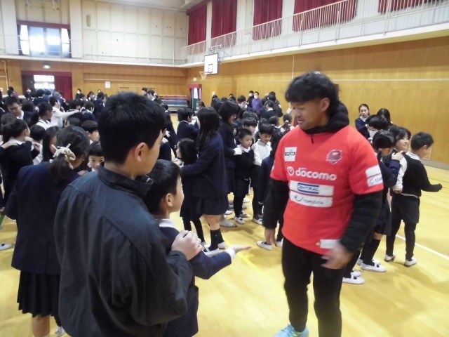 レッドハリケーンズの選手の皆さんが千本小学校に来てくれました。