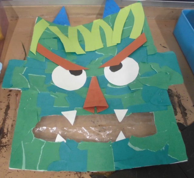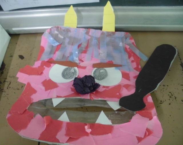 ティッシュの箱を使って、おにを作りました。