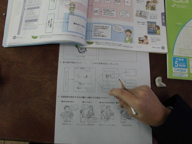 買い物をするときに、どんなことに気をつけたらいいかについて、皆で意見を出し合いました。