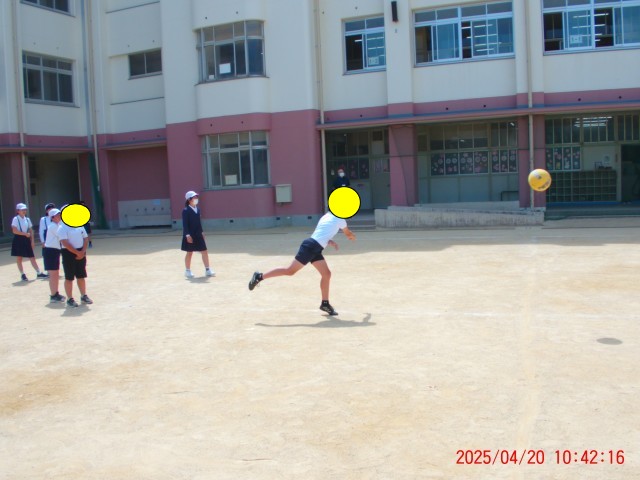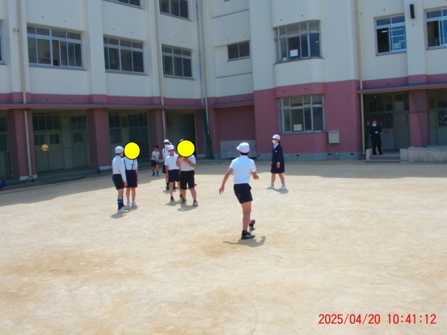 休み時間にクラスみんな遊びでドッジボールをしている様子です。