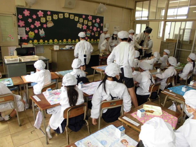 6年生が給食を運んでくれています。