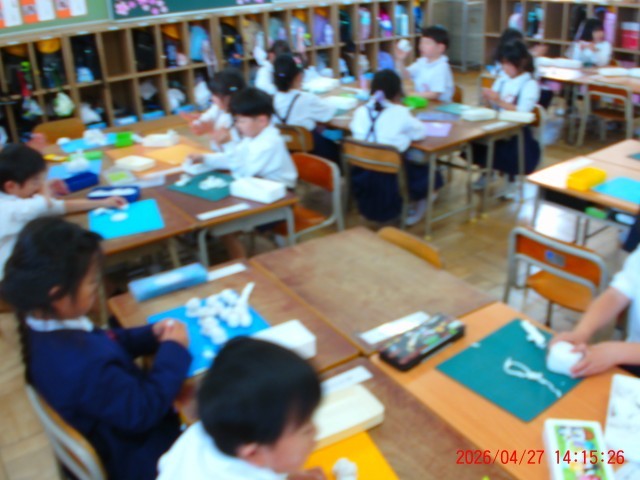 図画工作科の時間に「ねんどあそび」をしました。それぞれ思い思いの物を楽しそうに作っていました。