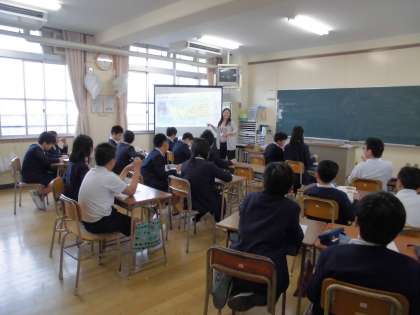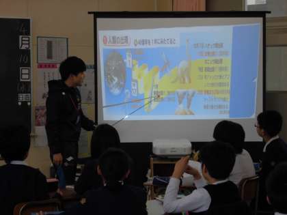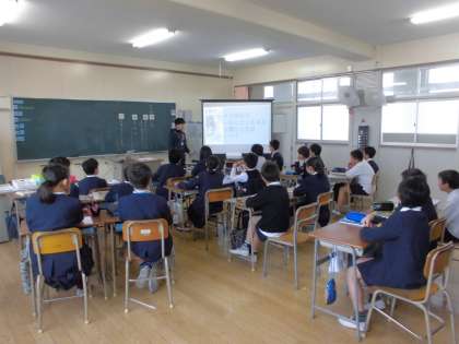 みんな、先生の話をよく聞いていました。子どもたちの興味や学習意欲を高めれるように、事前にパワーポイントの教材を数日かけて作成し、授業にのぞんだそうです。