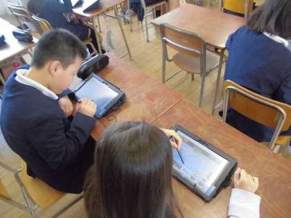 4月18日(木)5年2組の授業の様子です。タブレットを使いながら授業を行っていました。