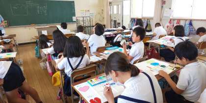 5月13日(月)5・6限、5年2組での図画工作科の様子です。「心のもよう」という題材で、絵の具を使い、自分なりの心のもようを描きました。