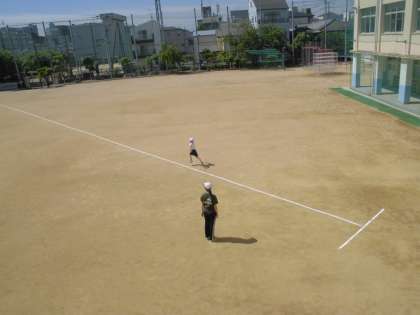 5月27日(月)からスポーツテストが始まりました。そのテストに先がけて、体育の時間に練習する3年生の様子です。