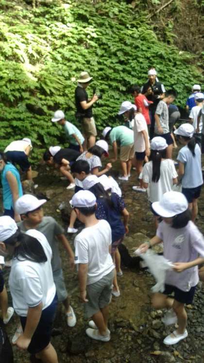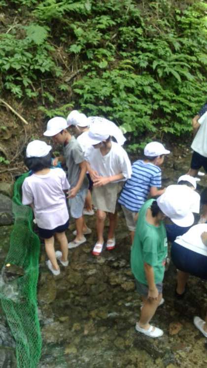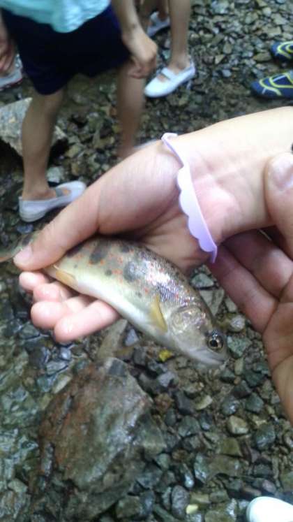 あまごをつかまえました。今から、くしにさして、焼いて食べます。