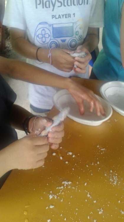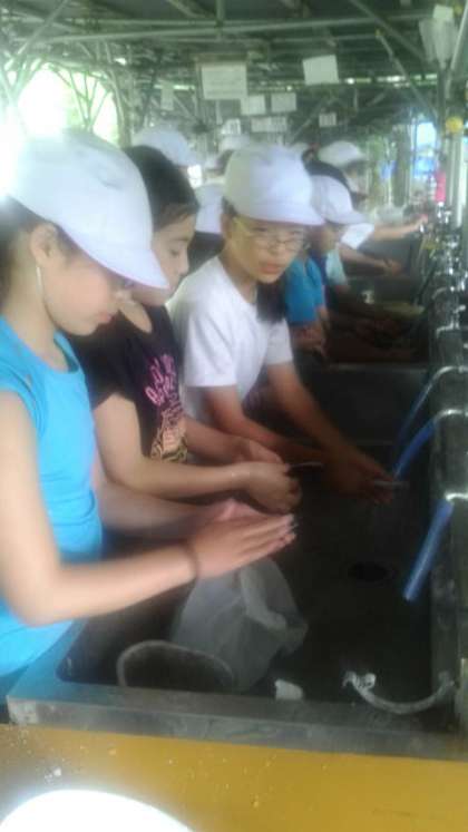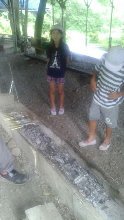 あまごのぬめりを塩で洗い落とし串をさして焼いているところです。