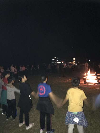 キャンプファイヤーではレク係の人がダンスをしたり、歌を歌って盛り上げてくれました。