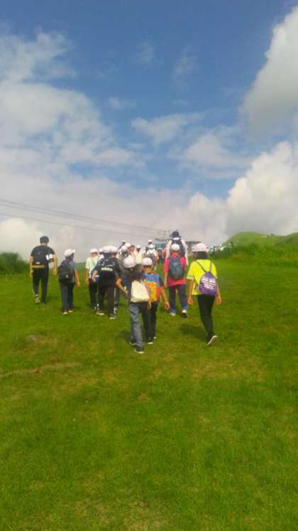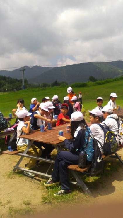 登山ハイキングに出発しました。(約2時間後)帰ってきてジュースをいただきました。