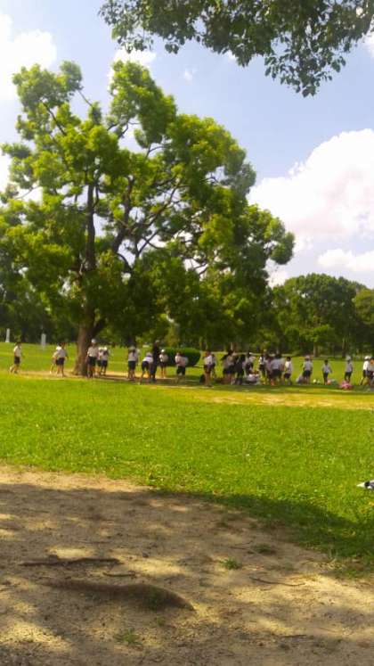 先生たちも参加して、鬼ごっこが始まりました。