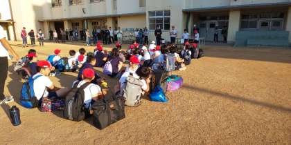 10月7日(月)、1泊2日の修学旅行へ本日より行きます。出発式の様子です。