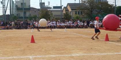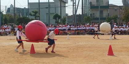 2年生による「大玉ワッショイ」