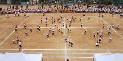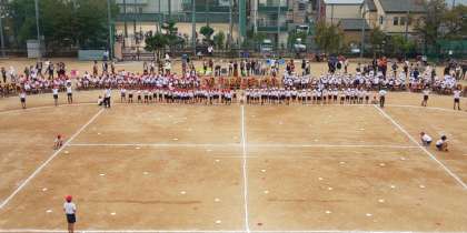 全学年による「ひっくりかえせ ひっくりかえせ」