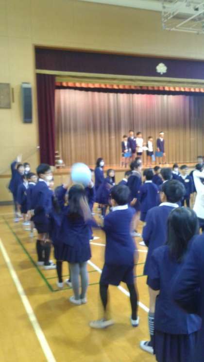 12月19日(木)児童集会でボールまわしリレーを行いました。