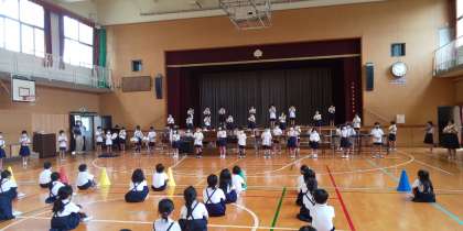 2年生から1年生に、歌や演奏のプレゼントがありました。