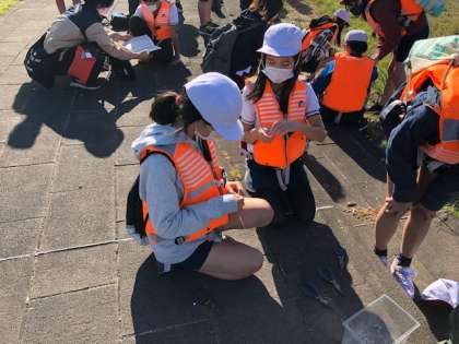 シーグラスを使ったクラフト体験をしました。きれいな飾りができました!