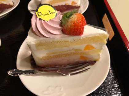 豪華な夕食にはデザートのケーキが特別につきました!お腹いっぱいでしたが、甘いものは別腹ですね。